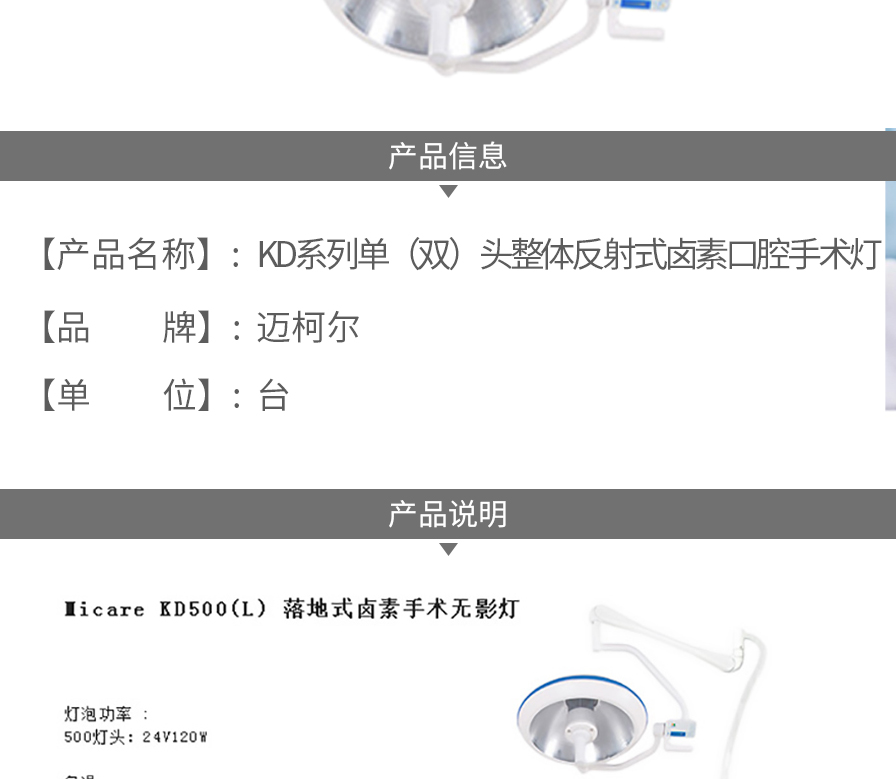 迈柯尔 KD系列单(双)头整体反射式卤素口腔手术灯商品编号:2950001007