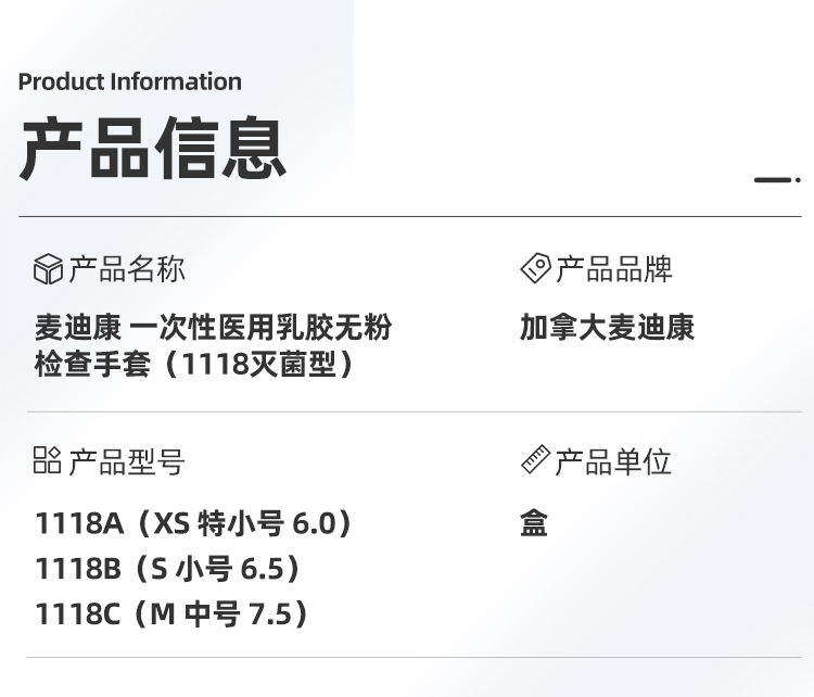 麦迪康 一次性医用乳胶无粉检查手套(1118灭菌独立包装)200*1商品编号:16260010001