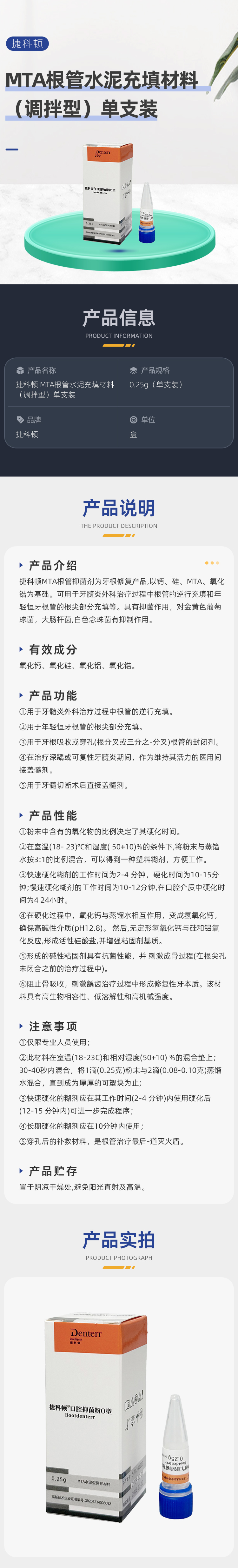 中俄国际捷科顿 捷科顿 MTA根管水泥充填材料(调拌型)单支装商品编号:4490002000
