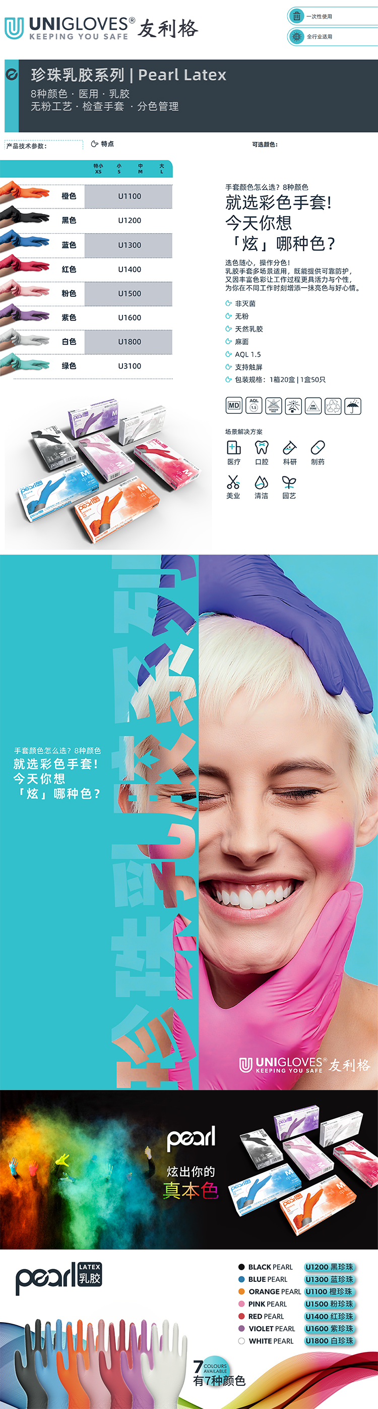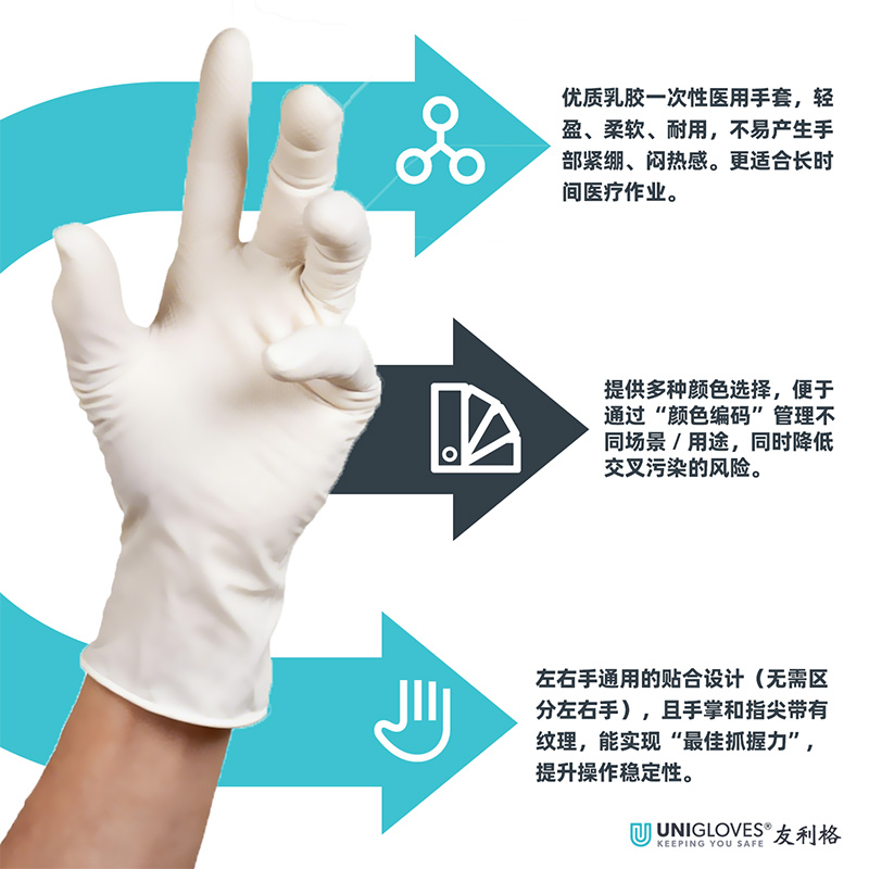 马来西亚友利格 友利格 医用检查手套/无粉乳胶检查手套50*1商品编号: