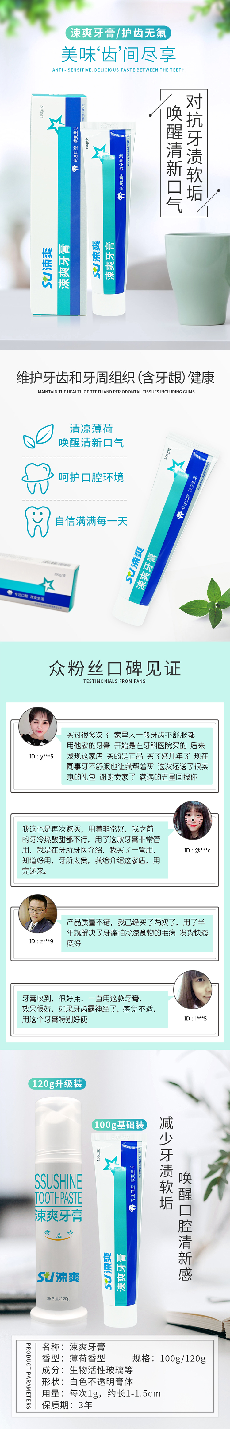 涑爽 抗敏感牙膏100g(护齿无氟)