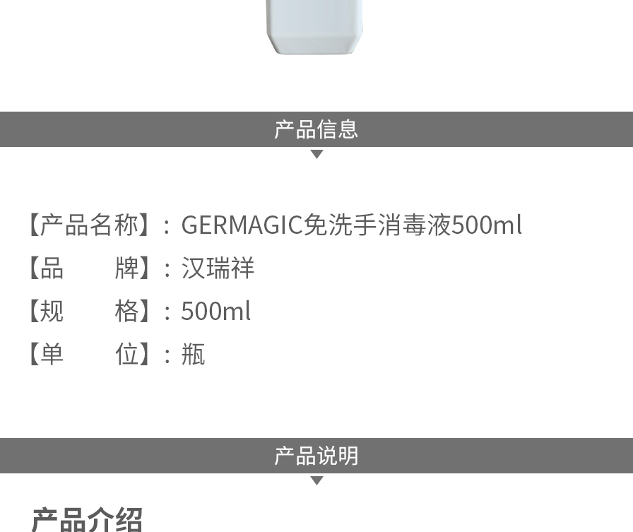 汉瑞祥 GERMAGIC免洗手消毒液500ml商品编号:4390010001 (温馨提示:此产品不退换,介意者慎拍.)