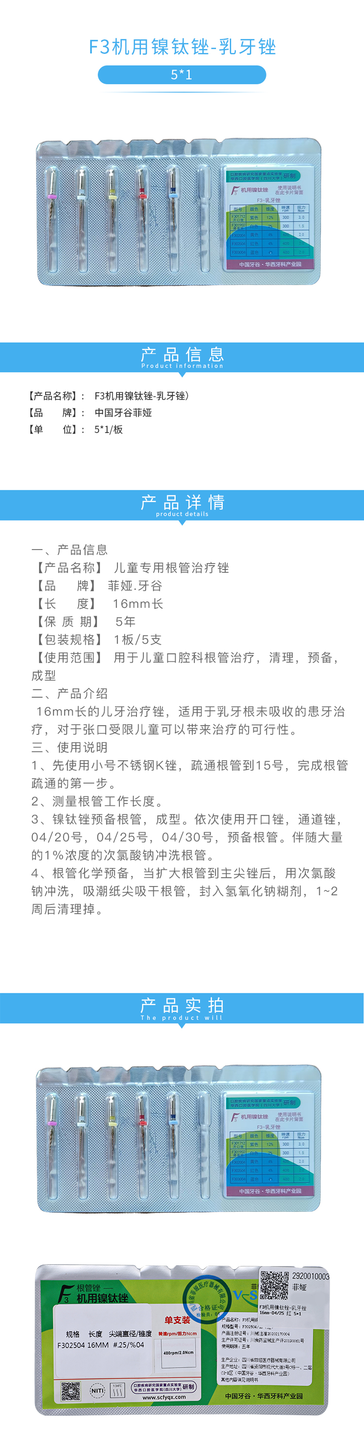 中国牙谷菲娅 F3机用镍钛锉-乳牙锉商品编号:2920010003