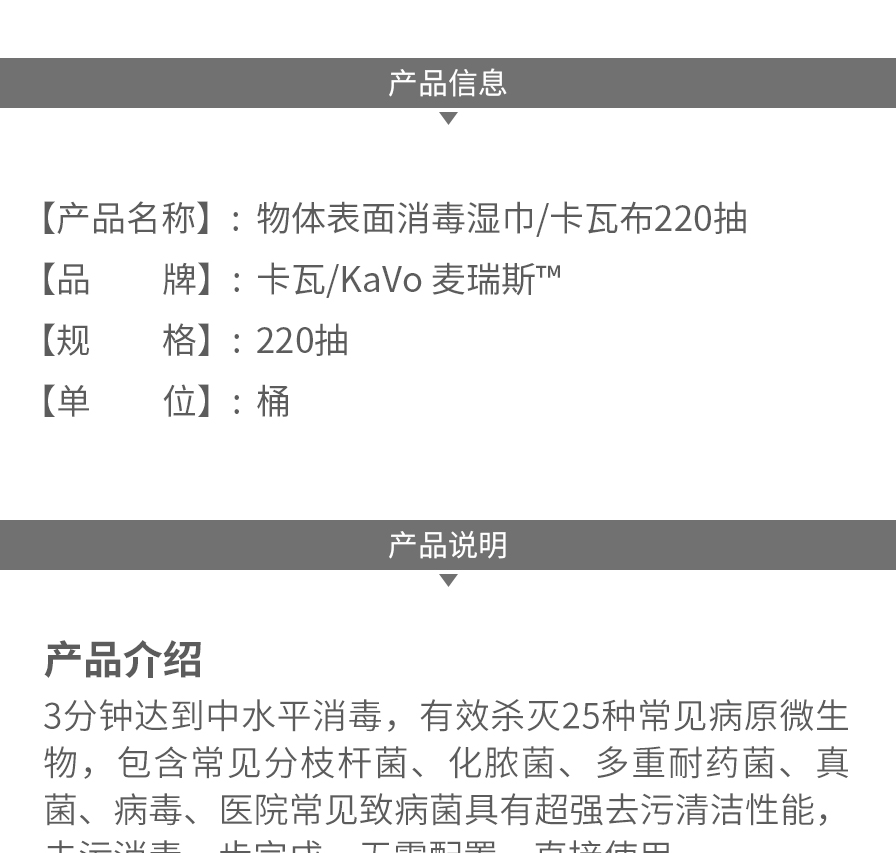 卡瓦/KaVo 麦瑞斯™ 物体表面消毒湿巾/卡瓦布220抽商品编号:4040017001